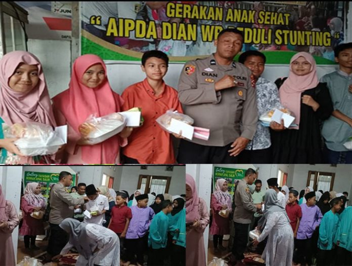 PADANGTIME.COM | Setelah memberikan santunan kepada anak stunting dalam rangka agenda Jum’at Berkah, Aipda Dian Wihendro melanjutkan aktivitasnya bersama Yayasan Berkah Amal Salih di Banuaran, Kecamatan Lubeg, pada Jumat (25/10/24) setelah salat Jum’at.