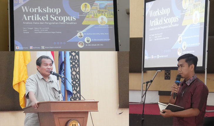 padangtime.com – Universitas Negeri Padang (UNP) terus mendorong peningkatan produktivitas dosen dalam publikasi ilmiah bereputasi melalui penyelenggaraan Workshop Artikel Scopus bertema “Analisis Data dan Pengolahan Data Penelitian”, yang diadakan di Aula FMIPA UNP pada Rabu (25/6).