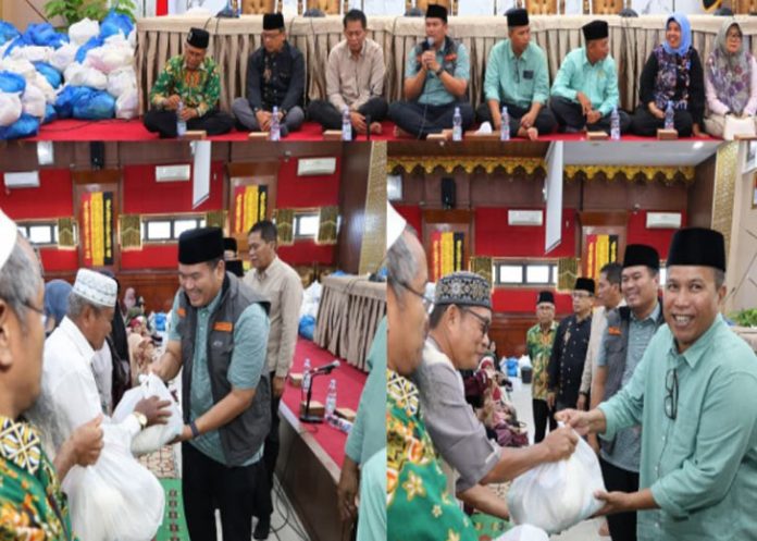 Wali Kota Pariaman, Yota Balad didampingi Wakil Wali Kota Pariaman, Mulyadi menyerahkan bantuan sembako kepada 500 Guru Madrasah Diniyah Takmiliyah Awaliyah (MDTA) se Kota Pariaman yang terdampak bencana Hidrometeorologi di Aula Balaikota Pariaman, Sabtu (10/1).