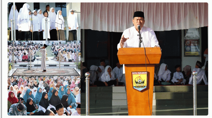 Padang TIME.com – Sebanyak 500 orang siswa/siswi Madrasah Diniyah Takmiliyah Awaliyah (MDTA) / Madrasah Diniyah Takmiliyah Wustha (MDTU) se Kota Pariaman ikuti Apel Akbar Didikan Subuh dalam rangka menyambut Tahun Baru Islam 1447 H/2025M dan Peringatan HUT Kota Pariaman ke-23 di Halaman Balaikota Pariaman, Jumat (27/6/2025).