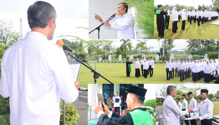 Ia juga menerangkan inti dari kegiatan kita hari ini adalah Pengambilan Sumpah dan Pelantikan, sakral dan sahnya bapak/ibu diterima sebagai ASN adalah pas dilantik dan disumpah diatas Al Qur’an, dan hendaknya sumpah dan janji yang bapak/ibu bacakan, dapat diterjemahkan dalam setiap tindakan yang akan dilakukan nantinya.