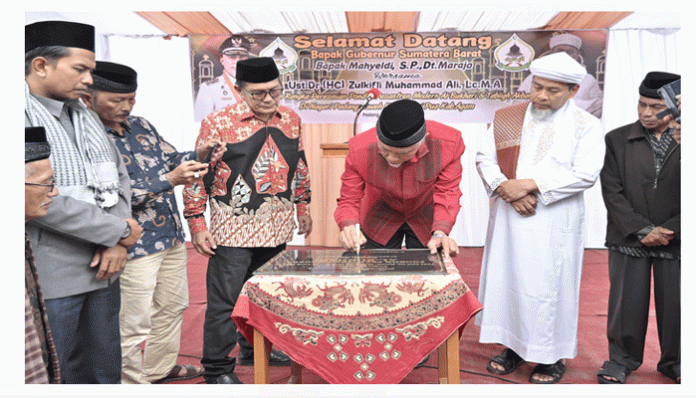 PadangTIME.com – AGAM–Gubernur Sumatera Barat (Sumbar), Mahyeldi Ansharullah, menekankan bahwa keputusan menyempurnakan nama Masjid Raya Sumatera Barat menjadi ‘Masjid Raya Syekh Ahmad Khatib Al Minangkabawi Provinsi Sumatera Barat’ adalah wujud penghargaan atas jasa Syekh Ahmad Khatib selaku ulama dan Imam Besar Masjidil Haram, yang juga tempat berguru bagi banyak ulama besar asal Sumbar dan bahkan ulama Nusantara. Hal itu disampaikan Gubernur di sela peresmian Pondok Pesantren Modern Al-Bukhari di Nagari Padang Laweh, Kecamatan Sungai Pua, Kabupaten Agam, Kamis (18/04/2024). Oleh karena itu, Gubernur menampik anggapan sebagian pihak, yang menilai penyempurnaan nama Masjid Raya hanya bermotif pada kepentingan peluang investasi dan kerja sama dengan Timur Tengah.