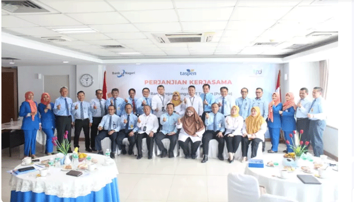 PADANGTIME.COM | PT Bank Nagari lakukan Penandatanganan Kerja Sama (PKS) dengan PT Taspen (Persero), ini bertujuan untuk Pembayaran Tabungan Hari Tua, Pensiun, Jaminan Kecelakaan Kerja dan Jaminan Kematian Melalui Rekening Bank telah dilaksanakan pada hari Senin, tanggal 24 Juni 2024 di Ruangan Lantai 4 Kantor Bank Nagari Jl. Pemuda No 21 Padang.