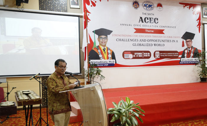 padangtime.com – Program Studi Pendidikan Pancasila dan Kewarganegaraan (PPKn) Fakultas Ilmu Sosial, Universitas Negeri Padang (UNP), bekerja sama dengan Asosiasi Profesi Pendidikan Pancasila dan Kewarganegaraan Indonesia (AP3KnI), sukses menyelenggarakan The Sixth Annual Civic Education Conference (6th ACEC). Kegiatan berlangsung dari tanggal 25-26 September 2025 secara hybrid di UNP Hotel & Convention ini dihadiri oleh total 167 peserta, dengan 78 orang di antaranya hadir secara memikat.