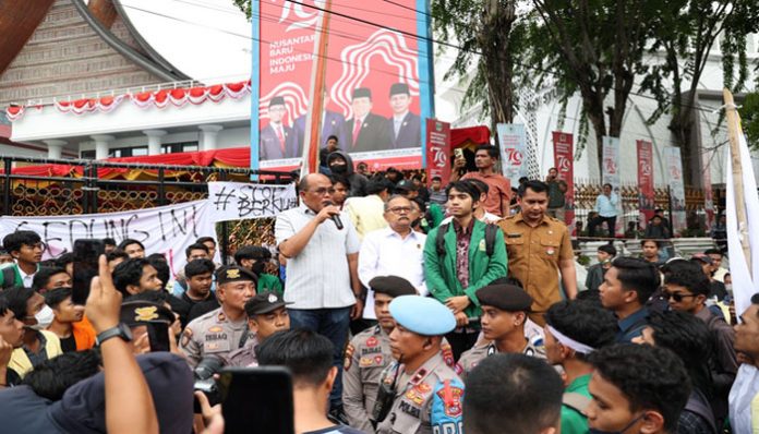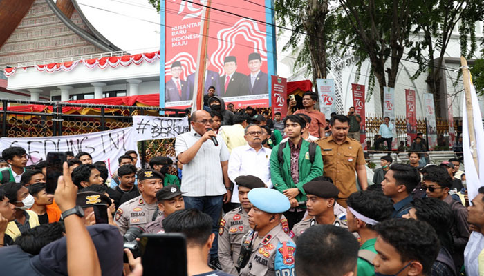 Aksi Demo Kawal Keputusan MK, Ketua DPRD Sumbar Temui Pengunjuk Rasa dan Beri Motivasi