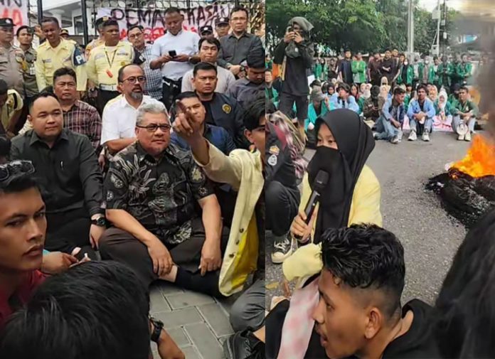 padangtime.com | Sekelompok mahasiswa yang terdiri dari berbagai universitas di Sumatera Barat menggelar aksi unjuk rasa di depan Gedung DPRD Sumatera Barat pada Selasa, 18 Februari 2025. Aksi ini bertujuan untuk menyampaikan kritik terhadap 100 hari pertama kinerja pemerintahan Presiden Prabowo Subianto dan Wakil Presiden Gibran Rakabuming Raka, yang dianggap tidak memenuhi ekspektasi masyarakat.