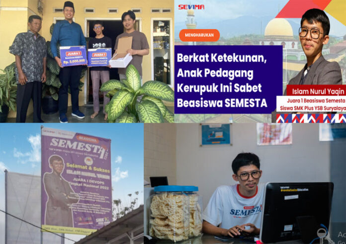 “Saya sudah sempat mendaftar di Kampus Negeri dan diterima. Namun berat untuk mengambilnya karena dagangan ayah juga kian menurun setelah Pandemi COVID-19,” kenang Islam dalam Penganugerahan Beasiswa SEMESTA di Hari Kebangkitan Teknologi Nasional, Rabu (10/08) pagi, yang dihadiri oleh CEO PT. Sentra Vidya Utama Sugianto Halim MMT dan Para Menteri serta Pejabat Tinggi Negara secara virtual.