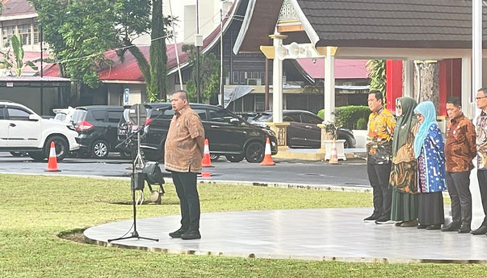 padangtime.com – Asisten Administrasi Umum Sekretariat Daerah Provinsi Sumatera Barat (Setdaprov Sumbar), Medi Iswandi, memimpin apel pagi rutin bagi Aparatur Sipil Negara (ASN) di lingkungan Sekretariat Daerah Provinsi Sumbar. Kegiatan dilangsungkan di Halaman Kantor Gubernur Sumbar, Kamis (11/9/2025).