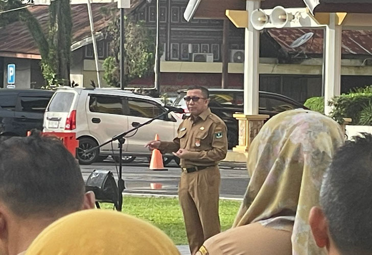Instruksi itu disampaikannya dihadapan seluruh jajaran saat memimpin apel rutin pegawai Sekretariat Daerah Provinsi Sumbar di halaman Kantor Gubernur, Senin (6/1/2025).