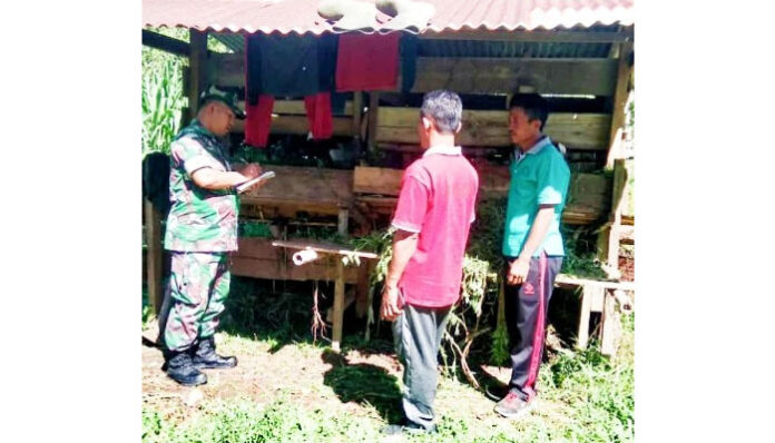 Berbagai upaya yang dilakukan Babinsa dalam meningkatkan ketahanan pangan wilayah salah satunya dengan rutin melakukan pendampingan terhadap peternakan sapi di wilayah binaanya.