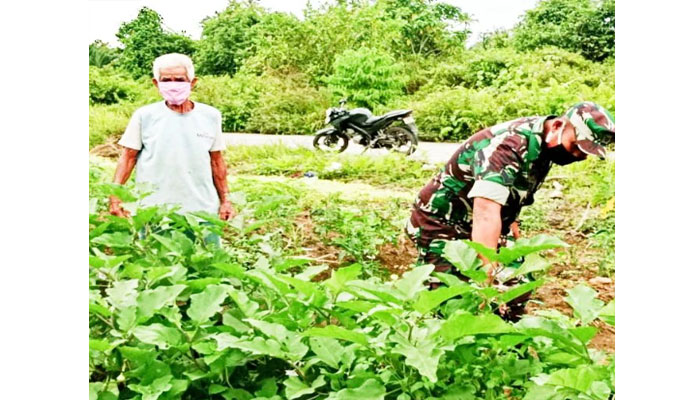 Dalam rangka memaksimalkan hasil produksi guna meningkatkan perekonomian petani di desa binaannya, Babinsa Koramil 04 Sikakap Sertu Havid laksanakan pendampingan tanaman terong di lahan milik Bapak Marsono (63) tahun seluas 6 x 15 M di Desa Sikakap.