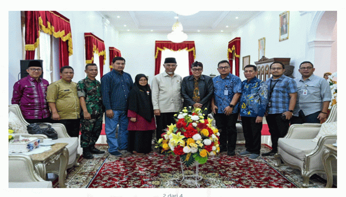 PadangTIME.com – Padang– Kepala Badan Penyuluhan dan Pengembangan Sumber Daya Manusia Pertanian (BPPSDMP) Kementerian Pertanian RI, Dedi Nursyamsi temui Gubernur Sumatera Barat, Mahyeldi Ansharullah di Istana Gubernur, Padang. Jumat (12/5/2023).