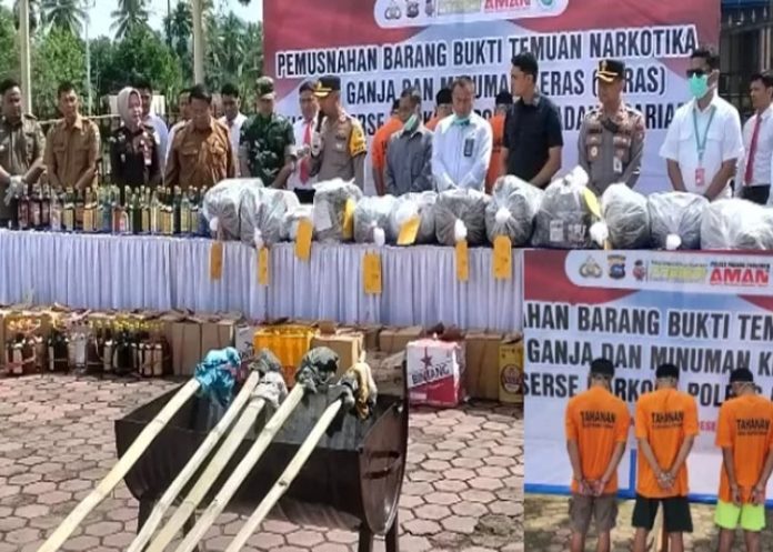 Total barang bukti yang dimusnahkan terdiri atas ganja kering seberat 26,842 kilogram dan 409 botol minuman keras dari berbagai merek. Seluruh barang bukti tersebut telah melalui proses pemeriksaan, pendataan, serta penetapan hukum sesuai dengan ketentuan yang berlaku.