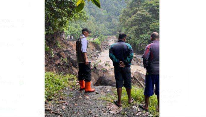 Hal ini disebabkan karena ada jalan terban akibat hujan deras pada Sabtu Malam tanggal 11 Mei 2024.