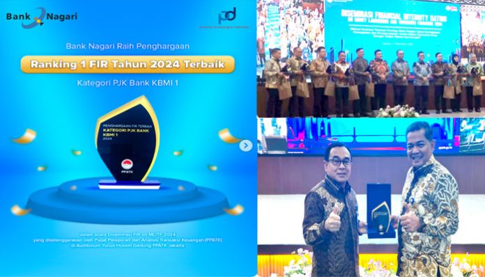 Jakarta – Bank Nagari kembali mengukir prestasi dengan meraih penghargaan FIR 2024 Terbaik (Ranking 1) dalam Kategori PJK Bank KBMI 1 pada acara Diseminasi FIR on ML/TF 2024 yang diselenggarakan oleh Pusat Pelaporan dan Analisis Transaksi Keuangan (PPATK) di Auditorium Yunus Husein Gedung PPATK, Jakarta, Kamis (12/12/2024).
