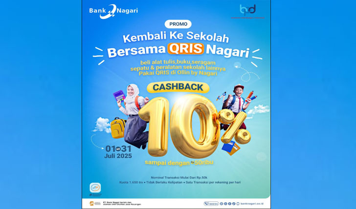 Melihat kondisi itu, Bank Nagari menghadirkan solusi finansial yang meringankan sekaligus menguntungkan melalui program sepesial berupa Promo Cashback Tahun Ajaran Baru 2025 selama periode 1 Juli sampai 31 Juli 2025.
