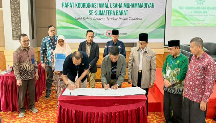 PADANGTIME.COM | Bank Nagari lakukan Penandatanganan Kerja Sama (PKS) dengan Amal Usaha Muhammadiyah se-Sumatera Barat, yakni RS Aisyiyah Padang, RS Aisyiyah Pariaman, BTM Sumbar, Pimpinan Wilayah Aisyiyah Sumbar, dan Politeknik Aisyiyah Muhammadiyah Sumbar telah dilaksanakan pada hari Sabtu, tanggal 22 Juni 2024 di Hotel UNP Padang.