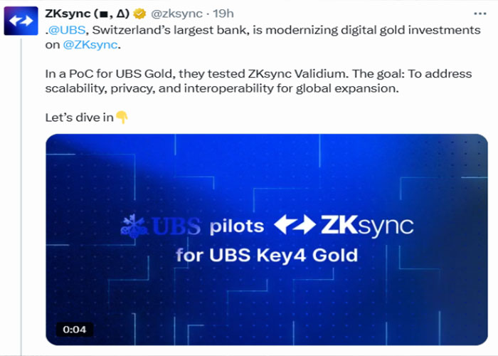 UBS sedang menguji blockchain untuk perdagangan emas digital menggunakan ZKsync, yang bertujuan untuk meningkatkan keamanan, skalabilitas, dan aksesibilitas bagi investor ritel.