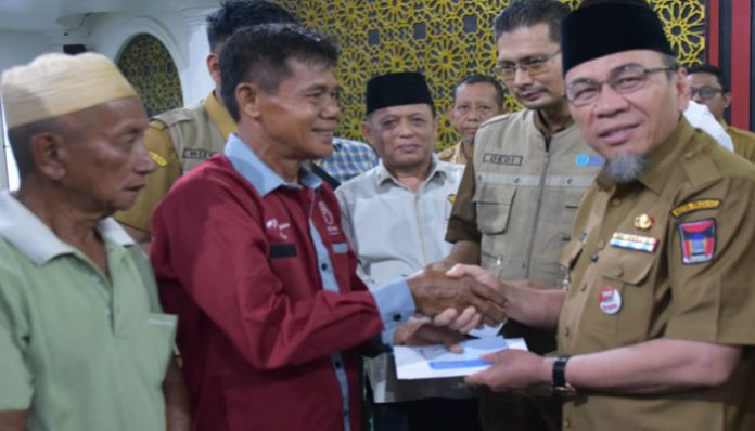 Penyerahan bantuan dilakukan langsung oleh Wakil Wali Kota Padang Maigus Nasir, di Masjid Darussalam, Jalan Pemancungan, Kelurahan Pasar Gadang, Selasa (14/10/2025).