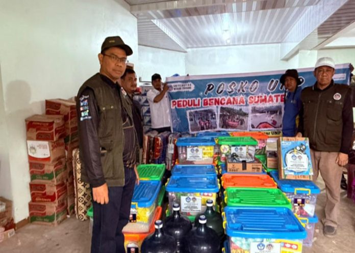 padangtime.com – Paket bantuan bencana alam dari Kementerian Pendidikan Tinggi, Sains dan Teknologi Republik Indonesia untuk korban bencana di sejumlah titik di Sumatera Barat mulai disalurkan oleh Tim Peduli Bencana Universitas Negeri Padang (UNP), diantaranya langsung dipimpin oleh Rektor UNP Krismadinata, Ph.D Bersama Sekretaris Universitas Dr. Erianjoni, M.Si, Kamis (25/12) pada dua titik Lokasi bencana di Kecamatan Matur Kabupaten Agam, yakni di Jorong Kuok Tigo Koto Nagari Matur Mudik dan Jorong Pauh Nagari Matur Hilir.