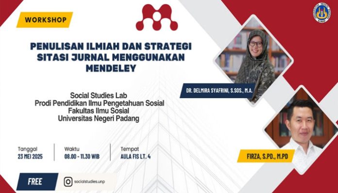 padangtime.com — Dalam rangka meningkatkan mutu dan daya saing akademik mahasiswa, Program Studi Pendidikan IPS Fakultas Ilmu Sosial (FIS) Universitas Negeri Padang (UNP) mengadakan Workshop Penulisan Karya Ilmiah dan Pemanfaatan Tools Mendeley, Jumat (23/5). Kegiatan ini diikuti antusias oleh 250 mahasiswa Departemen Sejarah.