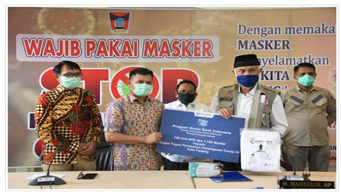 Kali ini bantuan datang dari Bank Indonesia (BI) Perwakilan Sumatera Barat yang memberikan 120 unit Alat Pelindung Diri (APD) dan 1.150 buah masker.