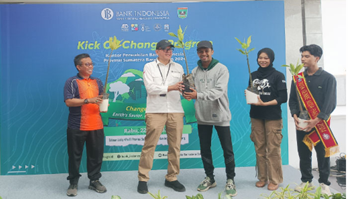 Bank Indonesia (BI) Perwakilan Sumbar dalam meresmikan program perubahan Menyelamatkan Bumi di Kantor BI Sumbar, Rabu (22/5/2024).