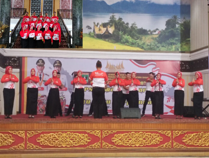 PadangTIME.com | Penampilan paduan suara dari Biro Administrasi Pimpinan (ADPIM) Setda Provinsi Sumatera Barat sangat memukau para penonton dan peserta lainnya.