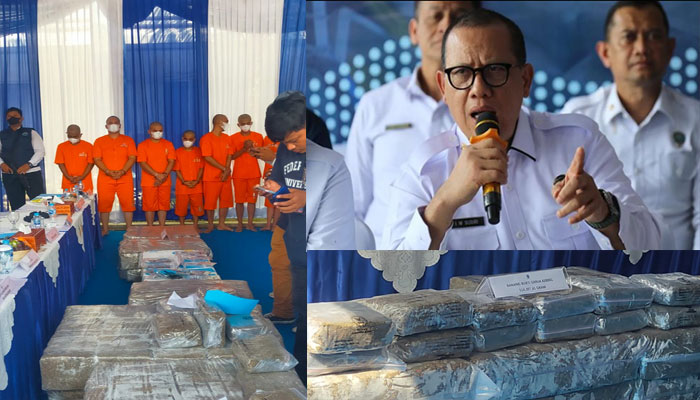 Kota Padang – PADANGTIME.COM | Badan Narkotika Nasional (BNN) berhasil menggagalkan upaya peredaran gelap narkotika golongan I jenis ganja dari Aceh, Gayo Lues ke Sumatera Barat. Tujuh orang pelaku berinisial K, R, P, Z, E, H, dan RK diamankan beserta barang bukti seberat 624.507,41 gram. Pengungkapan ini merupakan hasil join operasi bersama Bea dan Cukai Teluk Bayur, Padang, Sumbar.