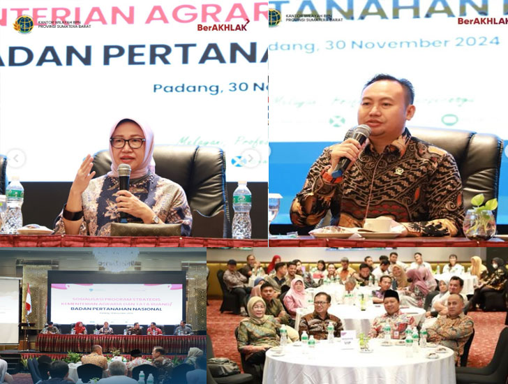 padangtime.com | Kantor Wilayah Badan Pertanahan Nasional (BPN) Provinsi Sumatera Barat, bekerja sama dengan Komisi II DPR RI, menggelar Sosialisasi Program Strategis Kementerian Agraria dan Tata Ruang/Badan Pertanahan Nasional (ATR/BPN) pada Sabtu, 30 November 2024, di Hotel Axana.