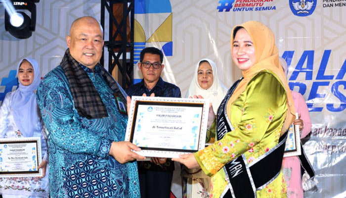 padangtime.com – Bunda Pendidikan Anak Usia Dini (PAUD) Kota Pariaman, Ny.Yosneli Balad menerima Penghargaan “Apresiasi Bunda PAUD” dari Kementerian Pendidikan, Dasar dan Menengah (Kemendikdasmen) RI dalam
