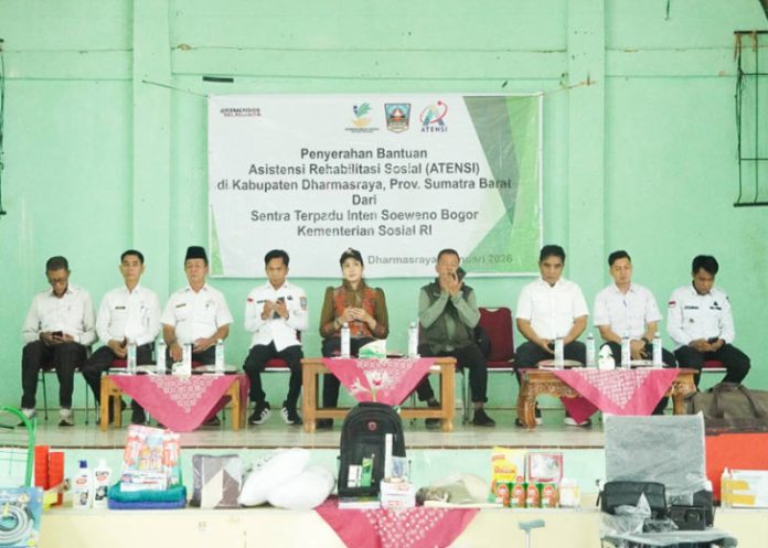 padangtime.com – Bupati Dharmasraya, Annisa Suci Ramadhani menghadiri sekaligus menyalurkan Bantuan Asistensi Rehabilitasi Sosial (ATENSI) Tahun 2025 kepada masyarakat penerima manfaat di Kabupaten Dharmasraya, Rabu (28/1/2026). Bantuan tersebut merupakan program Kementerian Sosial Republik Indonesia melalui Sentra Terpadu Inten Soeweno Bogor dengan total nilai mencapai Rp1.759.716.140.