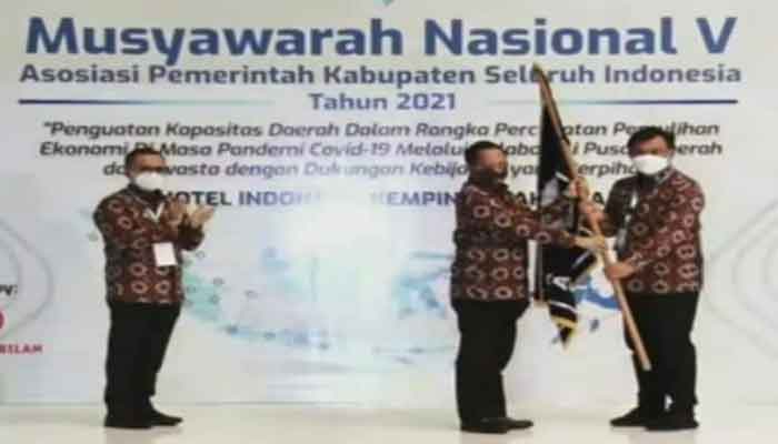 Terpilihnya Sutan Riska Tuanku Kerajaan menjadi Ketua Umum APKASI untuk periode 2021-2026 berdasarkan hasil Munas ke-V APKASI yang sedang berlangsung di hotel Kempinski Jakarta, Jum’at (26/3).