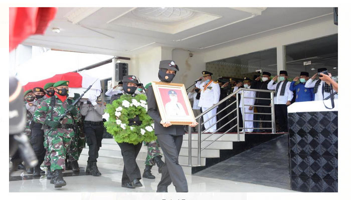 Segenap jajaran Pemkab Tanah Datar dan masyarakat melakukan penghormatan terakhir dalam upacara pelepasan jenazah Bupati Tanah Datar. Irdinansyah Tarmizi wafat di usia 63 tahun, di RSUP M. Djamil, pukul 19.55 WIB, Sabtu (19/9).