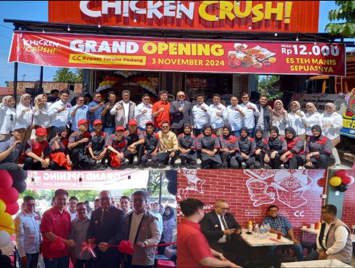 Padang – padangtime.com | Penjabat (Pj) Wali Kota Padang, Andree Algamar, secara resmi membuka gerai ketiga Chicken Crush di Bypass Taruko, Kota Padang, Minggu (3/11/2024).