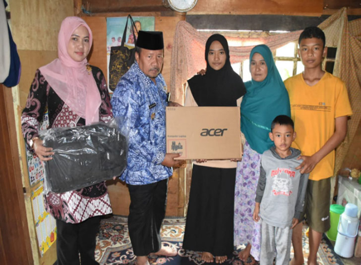 Dapat Bantuan Laptop dan Sembako dari Bupati Agam, Wisna Aroza Menangis