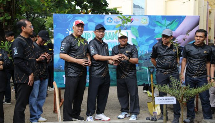 padangtime.com – Dalam rangka memperingati Dies Natalis ke-71, Universitas Negeri Padang (UNP) kembali menggelar aksi peduli lingkungan melalui kegiatan penanaman pohon dan pembersihan pantai yang dilaksanakan pada kegiatan jalan santai bersama sivitas akademika, Sabtu (18/10/2025).