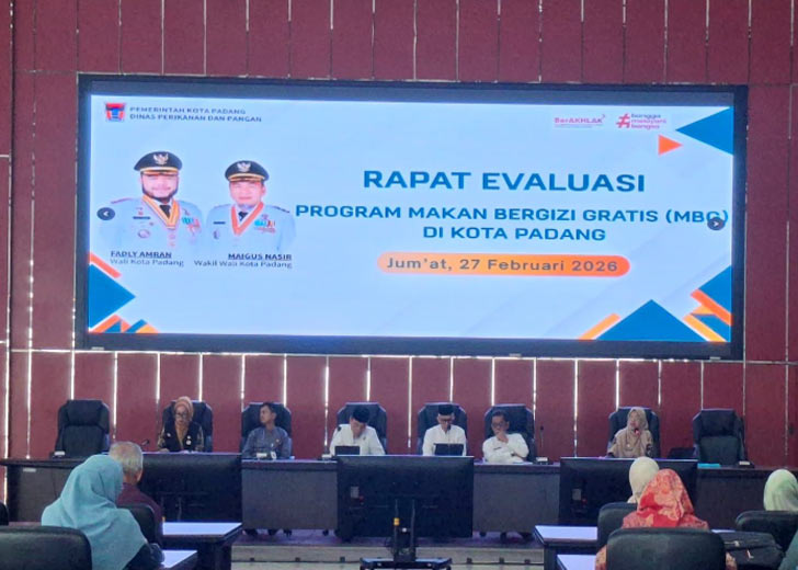 “Kita sudah layani 460 sekolah di sepuluh kecamatan,” tegas Alfiadi dalam Rapat Evaluasi Pelaksanaan Program Makan Bergizi Gratis (MBG) di Ruang Bagindo Aziz Chan, Kantor Balai Kota Padang, Jumat (27/2/2026).