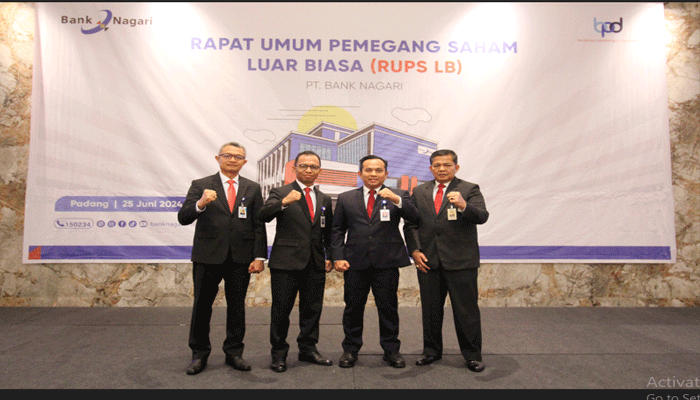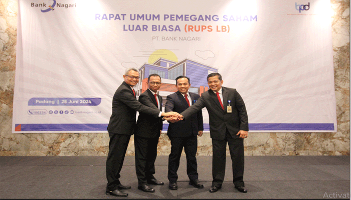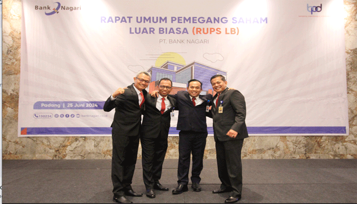 Padang TIME.com – Bank kebanggaan masyarakat Sumatera Barat (Sumbar), Bank Nagari, resmi memiliki kepemimpinan baru. Jajaran Direksi Bank Nagari periode 2024-2028 ditetapkan dalam Rapat Umum Pemegang Saham (RUPS) Luar Biasa (LB) Bank Nagari, Selasa (25/6).