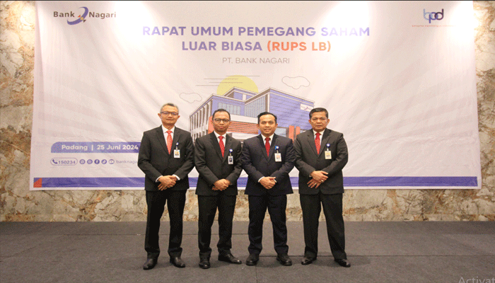 Padang TIME.com – Bank kebanggaan masyarakat Sumatera Barat (Sumbar), Bank Nagari, resmi memiliki kepemimpinan baru. Jajaran Direksi Bank Nagari periode 2024-2028 ditetapkan dalam Rapat Umum Pemegang Saham (RUPS) Luar Biasa (LB) Bank Nagari, Selasa (25/6).