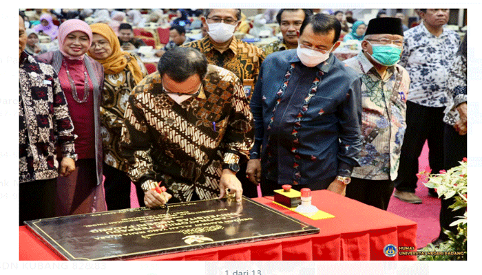 PadangTIME.com – Direktur Jenderal Pendidikan Tinggi, Riset, dan Teknologi, Prof. Ir Nizam,M.Sc., Ph.D, IPU, Asean Eng. Sabtu (23/7) Meresmikan tiga laboratorium di Universitas Negeri Padang (UNP). Ketiga laboratorium itu adalah Laboratorium Terpadu, Teaching Factory di Fakultas Teknik dan Laboratorium Kajian Halal (FMIPA) yang dipusatkan di Auditorium UNP Kampus Air Tawar Padang. Di samping itu dalam rangkaian kegiatan ini juga digelar kuliah umum dengan pembicara Hendro Kusumo, S.P ( Deputi Bidang Pengembangan Standar BSN dan Dr. Agustinus Praba Drijakarya, M.Eng (Direktur Akreditasi Laboratorium) yang merupakan bagian lembaga Komite Akreditasi Nasional (KAN).