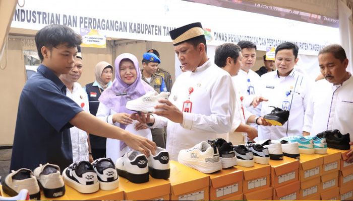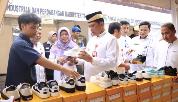 Tangerang – Pemerintah Kabupaten (Pemkab) Kabupaten Tangerang menggelar Gerai Tangerang Gemilang (GTG) Sneakers Day 2024 sebagai bentuk kepedulian pemerintah daerah mempromosikan industri kecil dan menengah (IKM), pengrajin, serta pengusaha sepatu di Tangerang.