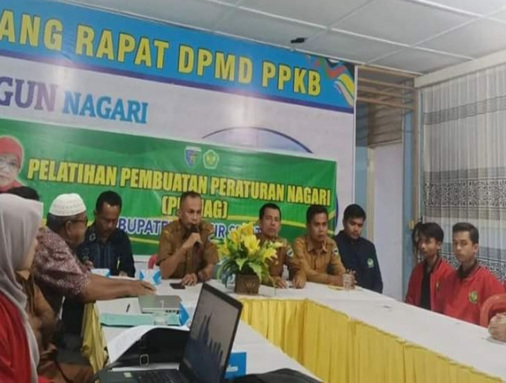PadangTIME.com | Dinas Pemberdayaan Masyarakat Desa, Pengendalian Penduduk dan Keluarga Berencana (DPMDP2KB) Kabupaten Pesisir Selatan bersama mahasiswa KKN Universitas Bung Hatta (UBH) Jurusan Hukum mengadakan pelatihan pembuatan Peraturan Nagari (Pernag) di aula Kantor DPMDP2KB setempat, Senin (29/8).