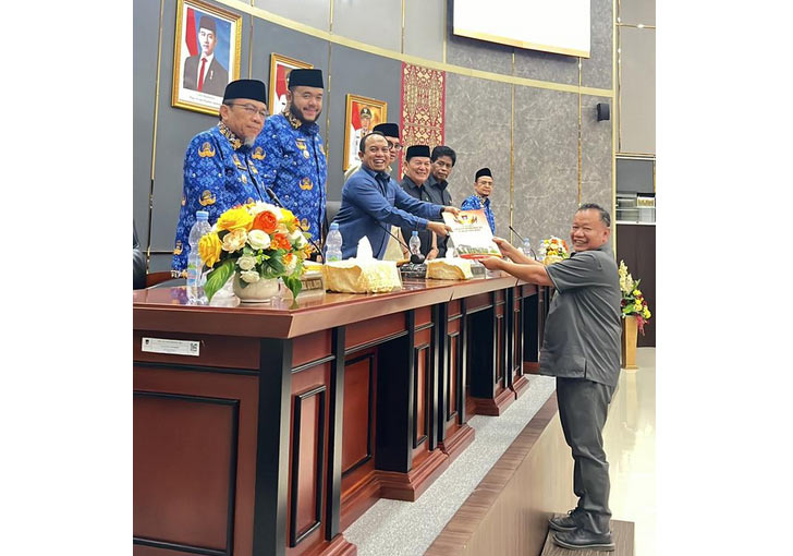 padangtime.com – Dewan Perwakilan Rakyat Daerah (DPRD) Kota Padang melaksanakan Rapat Paripurna Penyampaian Pendapat Akhir Fraksi-Fraksi terhadap dua Rancangan Peraturan Daerah (Ranperda) yang diajukan Pemerintah Kota Padang. Rapat dipimpin langsung oleh Ketua DPRD Muharlion dan Wakilnya Osman Ayub, Mastilizal Aye dan Jupri di Ruang Sidang Utama DPRD Kota Padang,(17/11/2025).