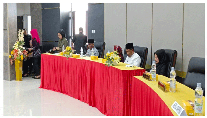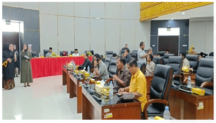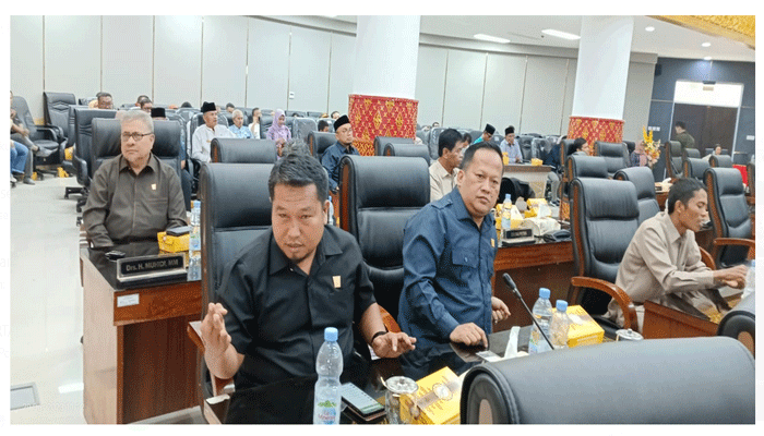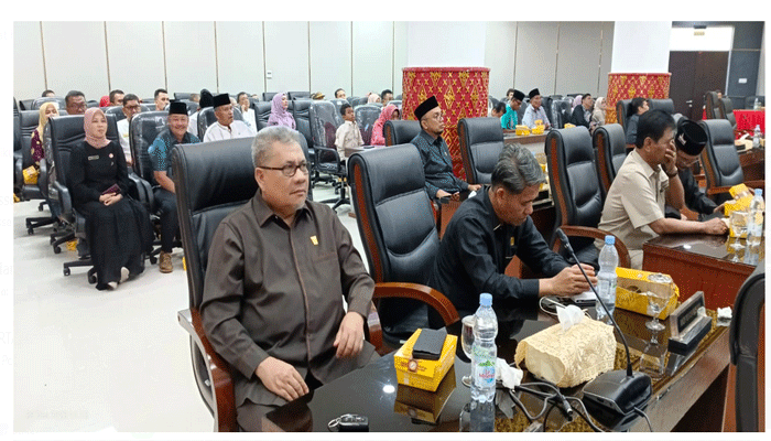 “Alhamdulillah, setelah kita cek absesnsi, rapat paripurna ini sudah memenuhi korum dan bisa dilanjutkan sesuai dengan tata tertib DPRD,” kata Syafrial Kani.