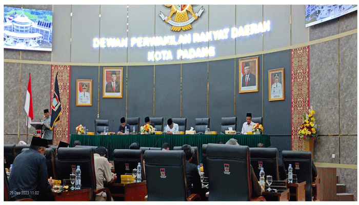 PadangTIME.com – Dewan Perwakilan Rakyat Daerah (DPRD) Kota Padang Provinsi Sumatera Barat menggelar rapat paripurna tutup masa sidang III tahun 2023 dan buka masa sidang I tahun 2024, Jumat, 29 Desember 2023.