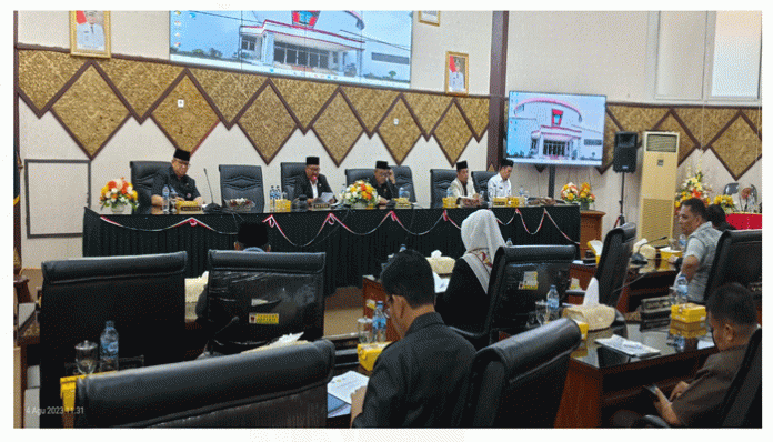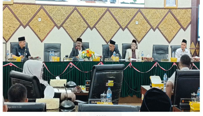 PadangTIME.com .DPRD Kota Padang menggelar rapat paripurna penyampaian pendapat akhir fraksi-fraksi terhadap Rancangan Kebijakan Umum Anggaran, Prioritas dan Plafon Anggaran Sementara APBD Kota Padang Tahun Anggaran 2024, bertempat di Gedung Bundar Sawahan, Jumat, (4/8).