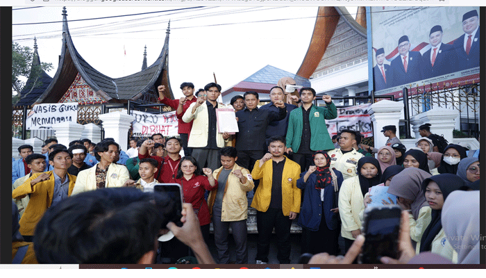 Padang TIME.com – Puluhan mahasiswa yang tergabung dalam aliansi Badan Eksekutif Mahasiswa (BEM) se Sumatera Barat (Sumbar) menggelar aksi dalam memperingati hari guru di depan gedung DPRD Provinsi Sumbar, Senin (25/11/2024).