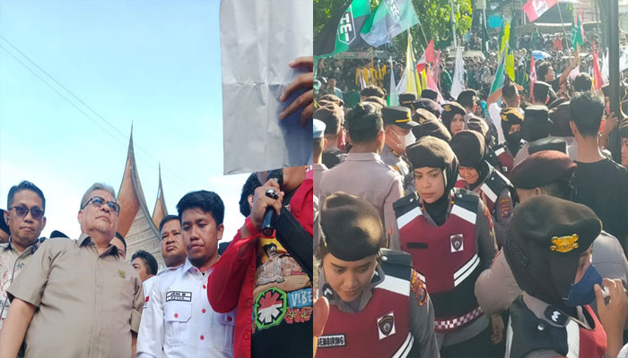 Ketua DPRD Sumbar, Muhidi, yang hadir bersama Wakil Ketua Evi Yandri dan Nanda Satria, serta Sekwan Maifrizon, langsung menerima aspirasi mahasiswa. Ia berjanji akan mengawal dan menyampaikan tuntutan tersebut kepada DPR RI dapil Sumbar.