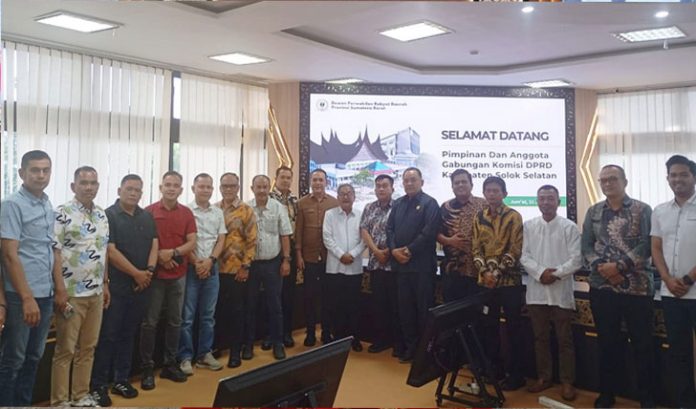padangtime.com – Dewan Perwakilan Rakyat Daerah (DPRD) Provinsi Sumatera Barat menerima kunjungan kerja dari pimpinan dan anggota gabungan komisi DPRD Kabupaten Solok Selatan, Jumat (11/7/2025). Kunjungan ini berlangsung di Ruang Rapat Khusus I DPRD Sumbar dan diterima langsung oleh anggota Badan Musyawarah (Bamus) DPRD Sumbar, Muzli M Nur.